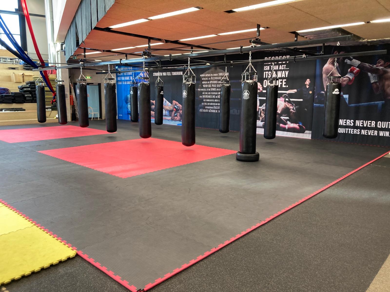 Haabersti treeningsaal hõlmab endas 400m2 tatami ala, saalides asuvad poksikotid, löögipinnad ja poksiring.